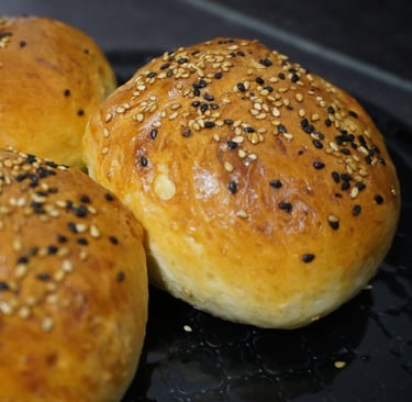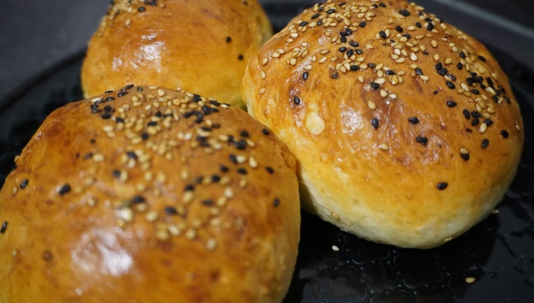Für extra Glanz und etwas mehr Crunch kannst du die Buns nach dem Bestreichen noch mit Sesamkörnern oder Schwarzkümmel bestreuen.
