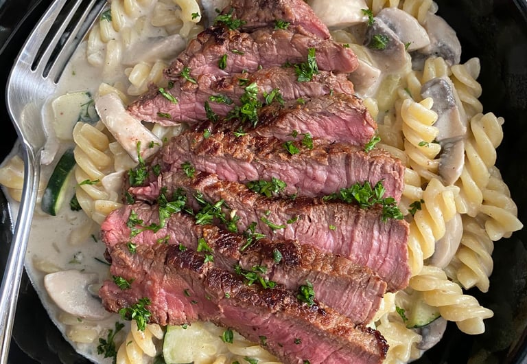 A dish that impresses yet is easy to prepare: tender beef meets al dente pasta in a rich, creamy mushroom sauce. Perfect for a quick dinner with a touch of luxury – ready in under 30 minutes. A weeknight meal that feels special and delights both guests and family alike.